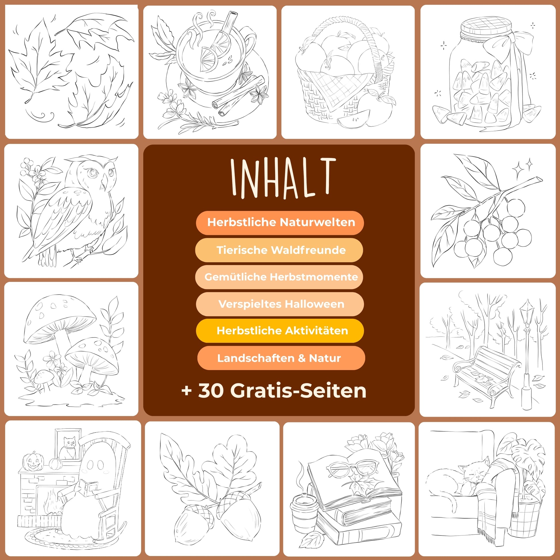 Vorgezeichnete Motive nehmen dich an die Hand – von feinen Details bis zu kleinen Szenen voller Ruhe.Einmal aufklappen, Farbe dazu, und du bist mitten im Flow.